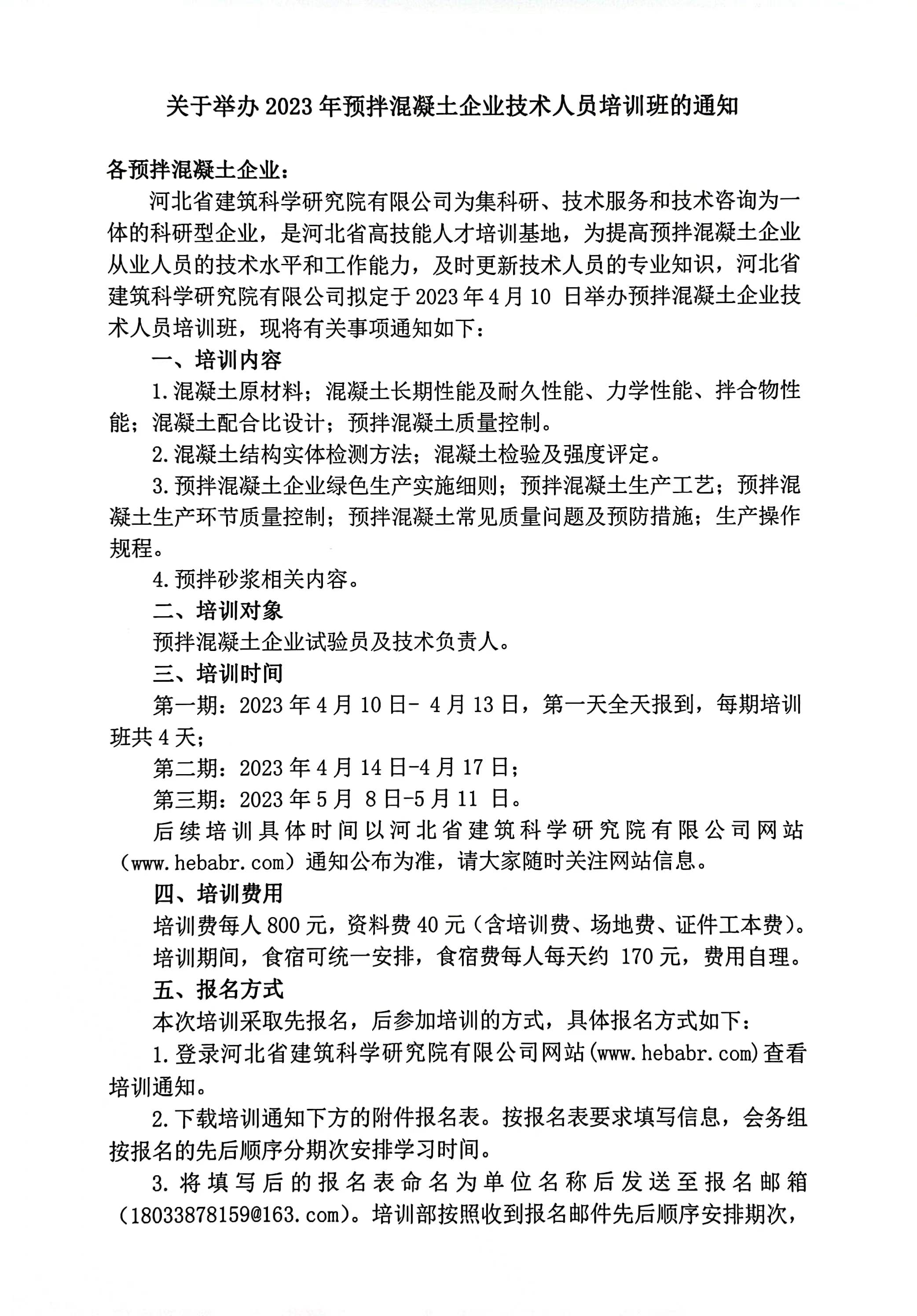 關于舉辦2023年預拌混凝土企業技術人員培訓班的通知