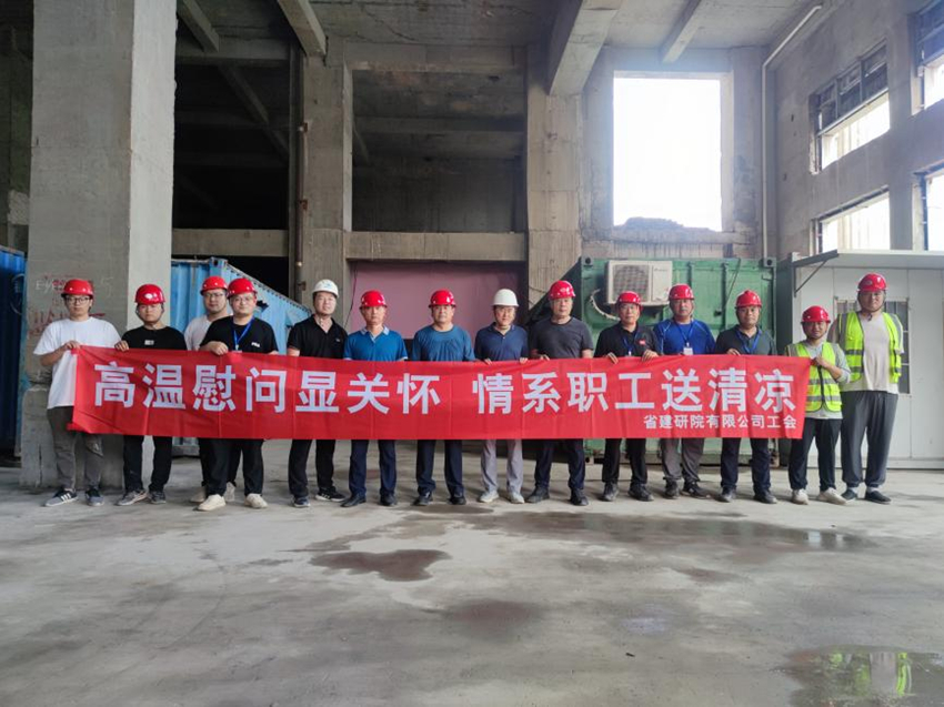 院公司總經(jīng)理葉金成同志及同行領(lǐng)導(dǎo)頂著烈日、冒著酷暑,來到工地一線實地調(diào)研指導(dǎo),并為全體參建員工送來關(guān)懷慰問。巖土所所長李金山同志將項目概況和現(xiàn)場進展情況進行了介紹。